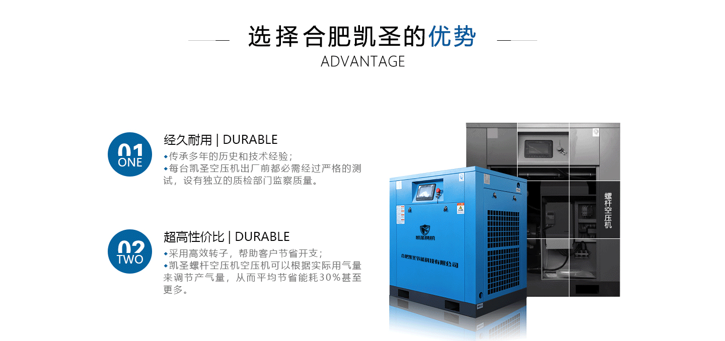 合肥凱圣節(jié)能科技有限公司是從事永磁變頻螺桿壓縮機系統(tǒng)的設計、制造、安裝、調試、維修與一體的公司。 在多年的螺桿空壓機研發(fā)與推廣歷程里,凱圣聚集和培養(yǎng)了大量壓縮機技術設計和管理人員,迅速發(fā)展成為集研究、生產(chǎn)、銷售、服務等環(huán)節(jié)為一體、嚴格按照標準執(zhí)行的企業(yè),公司成立開始,即以滿足客戶的實際需求為己任,大力開拓國內外節(jié)能型空壓機市場,并始終保持創(chuàng)新精神,全力研發(fā)更為節(jié)能的螺桿式空壓機,努力站在空壓機節(jié)能領域的排頭位置。 應用范圍:公司產(chǎn)品廣泛應用于機械、輕工、紡織、食品、石油、化工、冶金、礦山、電力、城建、醫(yī)學研究和科研等各行業(yè)中,將為節(jié)約能源做出巨大貢獻。公司秉承“信譽至上,...
